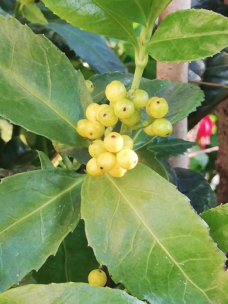 もう少し濃い色になるはずで、赤い実もちゃんと付くといいんだけどね😊