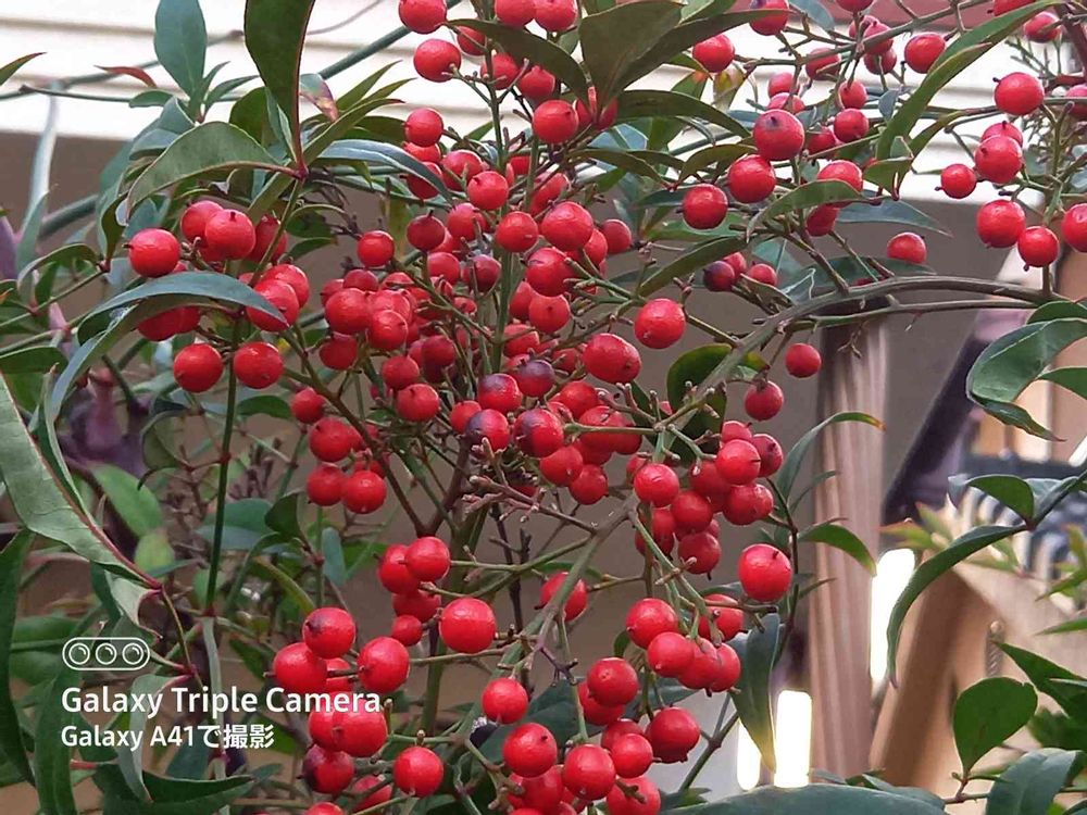 先月、”今日の花"✿で投稿した南天、1ヶ月経って赤く色づきました。
