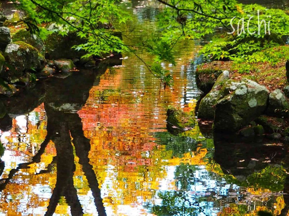 水鏡に映る紅葉を独り占めでした🍁🍁🍁🍁🍁