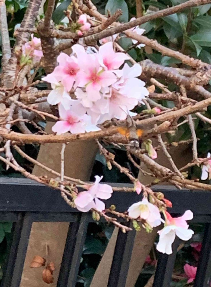 お散歩シリーズ。秋咲きの桜?を見かけました。四季咲きなのかも知れません。