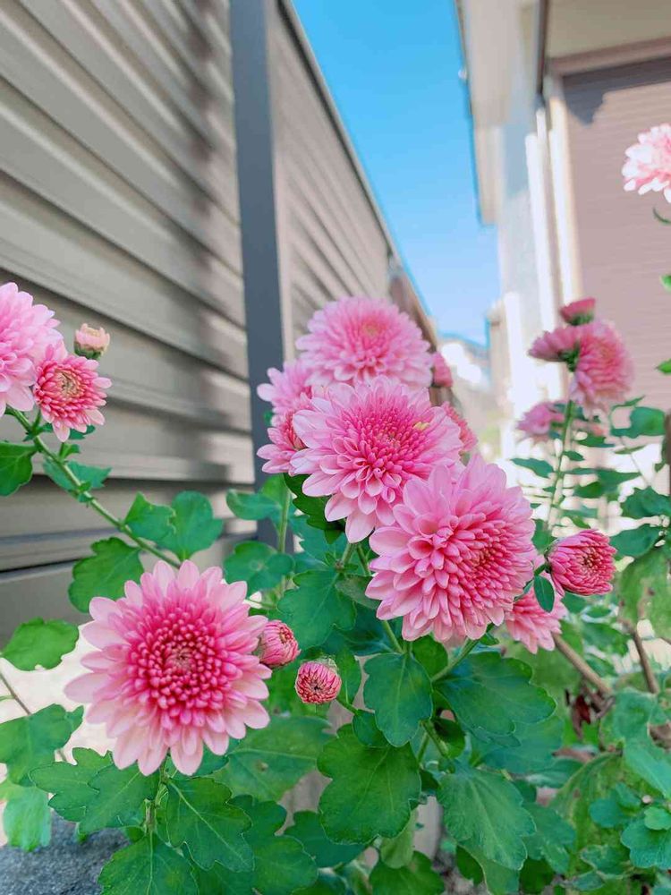 青空に映えた優しいお色のマムさん🌸🌸🌸