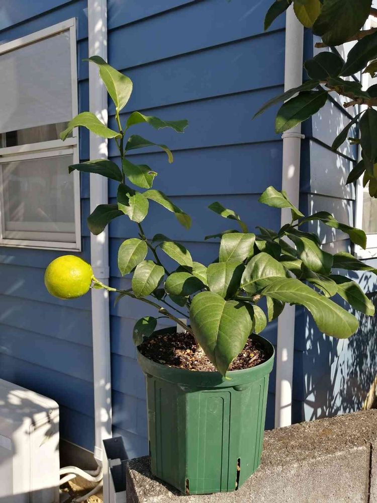 春に買ったレモンの苗「リスボン」だけど摘果して残った実が真ん丸で「マイヤー」みたいだ⁉️