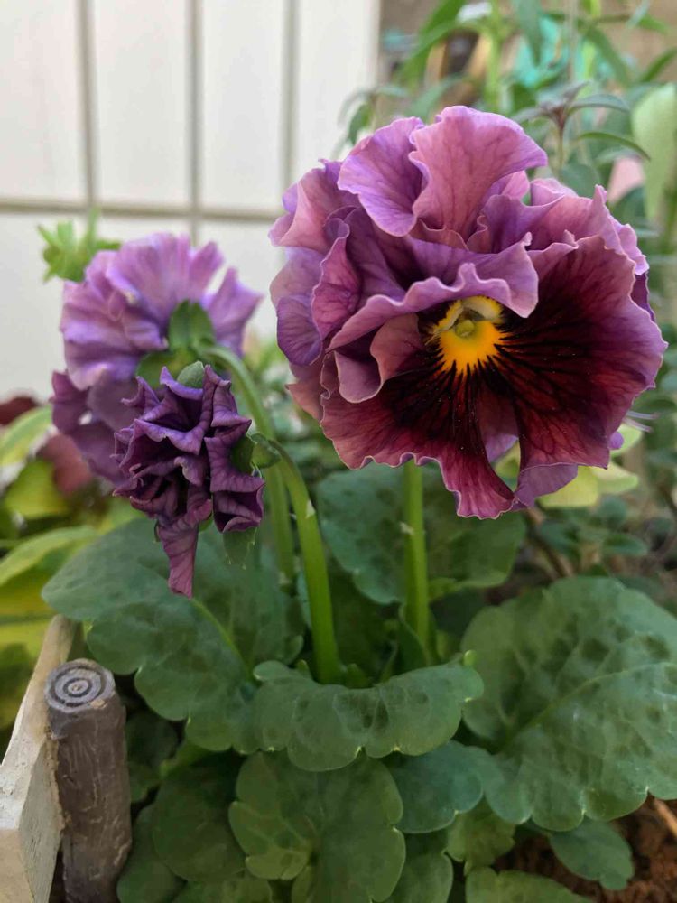 寄せ植えの中のパンジー。過去picを見たら、去年も同じこのフリフリさんをお迎えしていました。好みは変わらないと言う事ね。💜