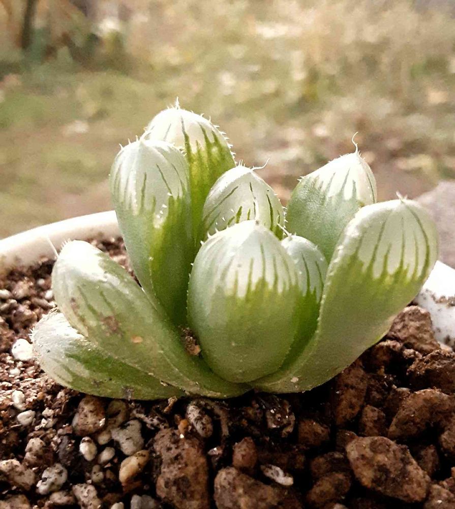ハオルチア ピリフェラです。これは何ヵ月も前にヤフオクで落札したピリフェラの小株が大きくなったものです。大きくなったと言っても4.5cmくらいなんですけどね。今日、いくつかあるハオルチアを株分けし鉢の中の土を新しく入れ換えました。