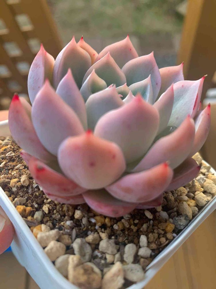 冬に入ったので、水やりを切り気味にしたら、開いた葉っぱが立ってきて、丸々してきましたよ💕💕
