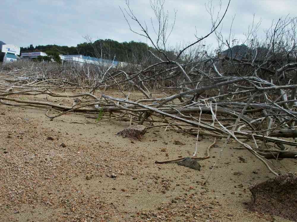 実は瀬戸内海では砂浜が減少しており、その砂を流出しないように頑張ってるのがこのハマゴウの根っこなのです😃