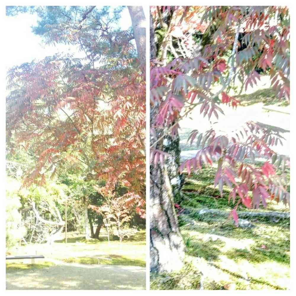 後園にて ヌルデ属でしょうか。 この木も紅葉するんですね。柔らかな色合いが優しげでした😊