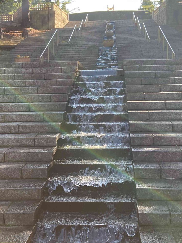 写真の上の方から水がこの水路を流れ落ちて花の広場前の池に流れ込んでいます。