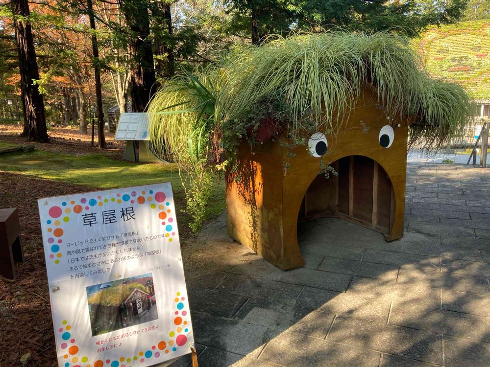 看板の説明にありますように、ヨーロッパでよく見かける草屋根の再現だそうです。