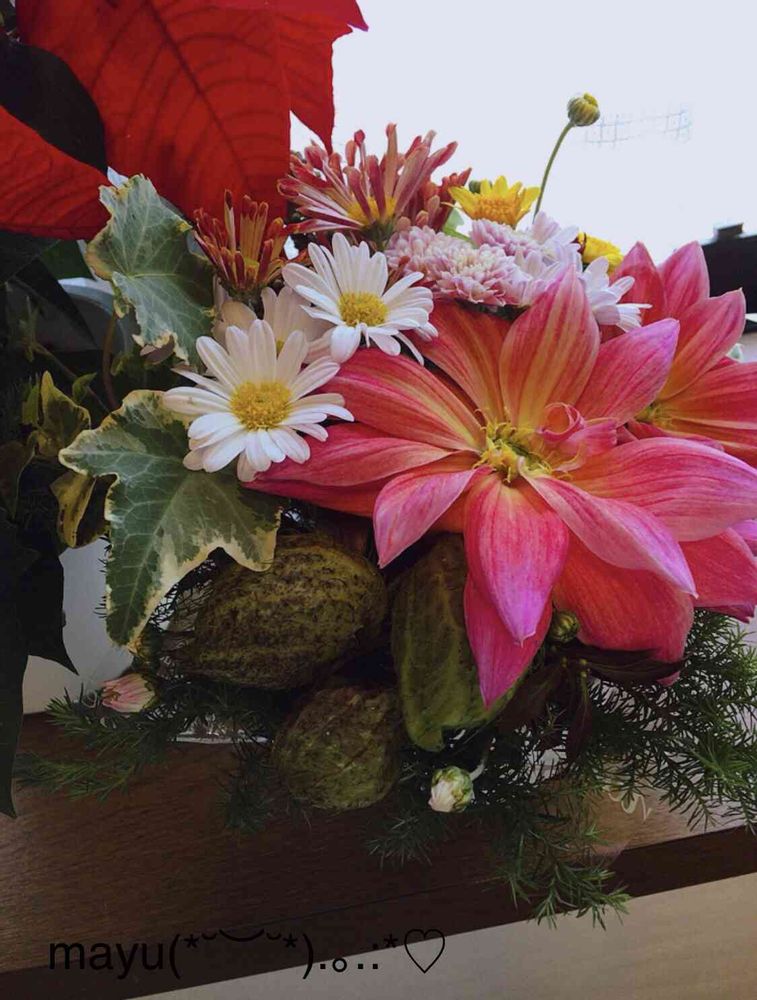 mayuさんの窓辺,ポインセチア♡,お誕生日アレンジの投稿画像