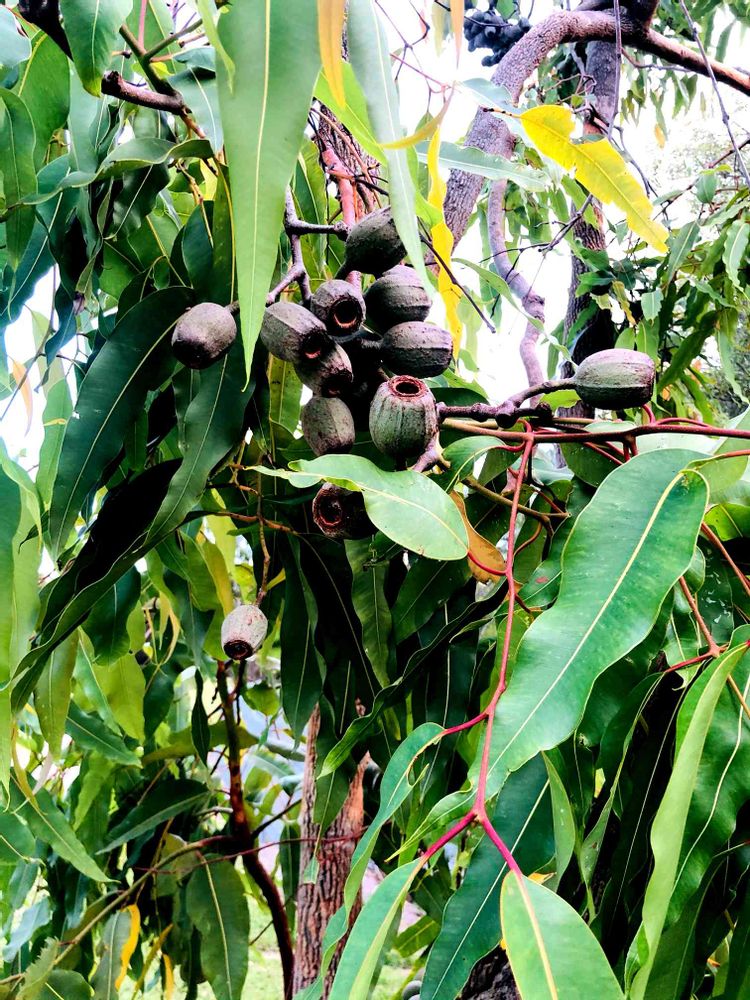 オージーアイコンのユーカリにガムナッツがいっぱいなっています。ナッツは長さ5センチ程で存在感ハンパないです‼️