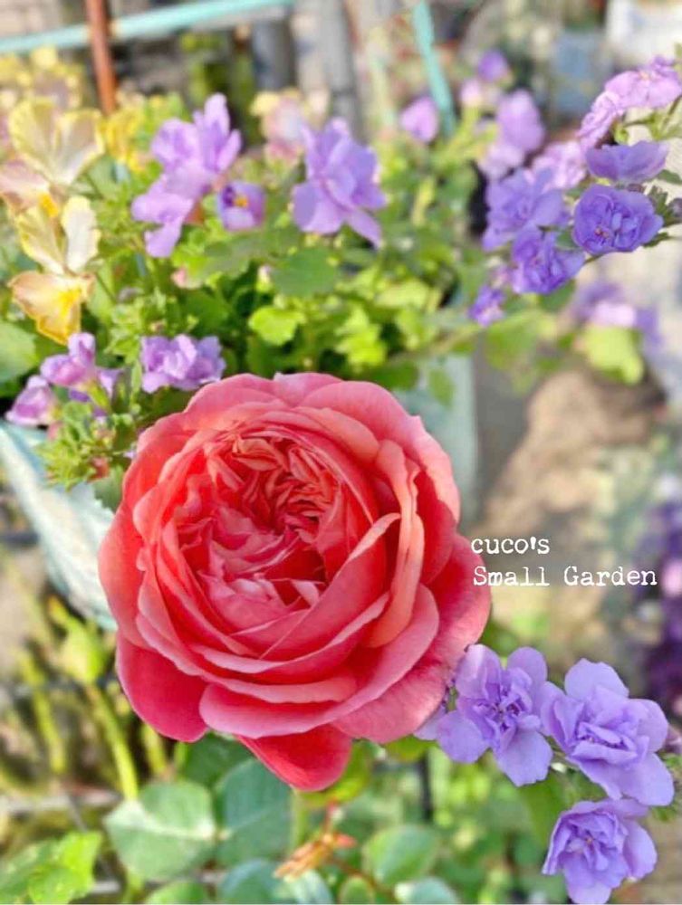 私はミニバラの方が苦手で、今は1つも育ててないのです。最近の強健種のガーデンローズは、ほぼ放任でも育つんですよー。この子とか(*≧m≦*)