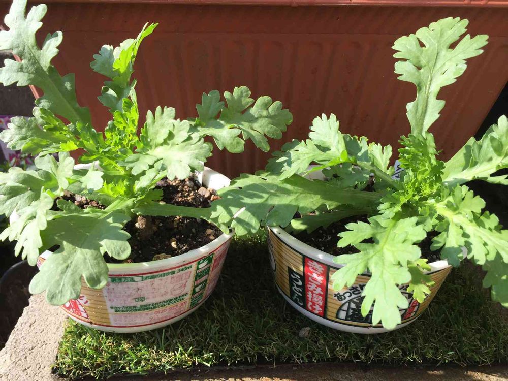 9月24日にカップ麺の容器に種まきした、春菊❣️