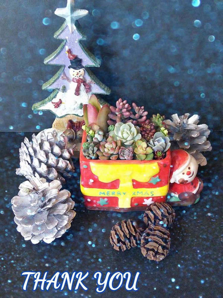 先日タニ友ちゃんから頂いた多肉植物で、ちょっと早いけどクリスマス寄せを作りました⛄️🎄✨
