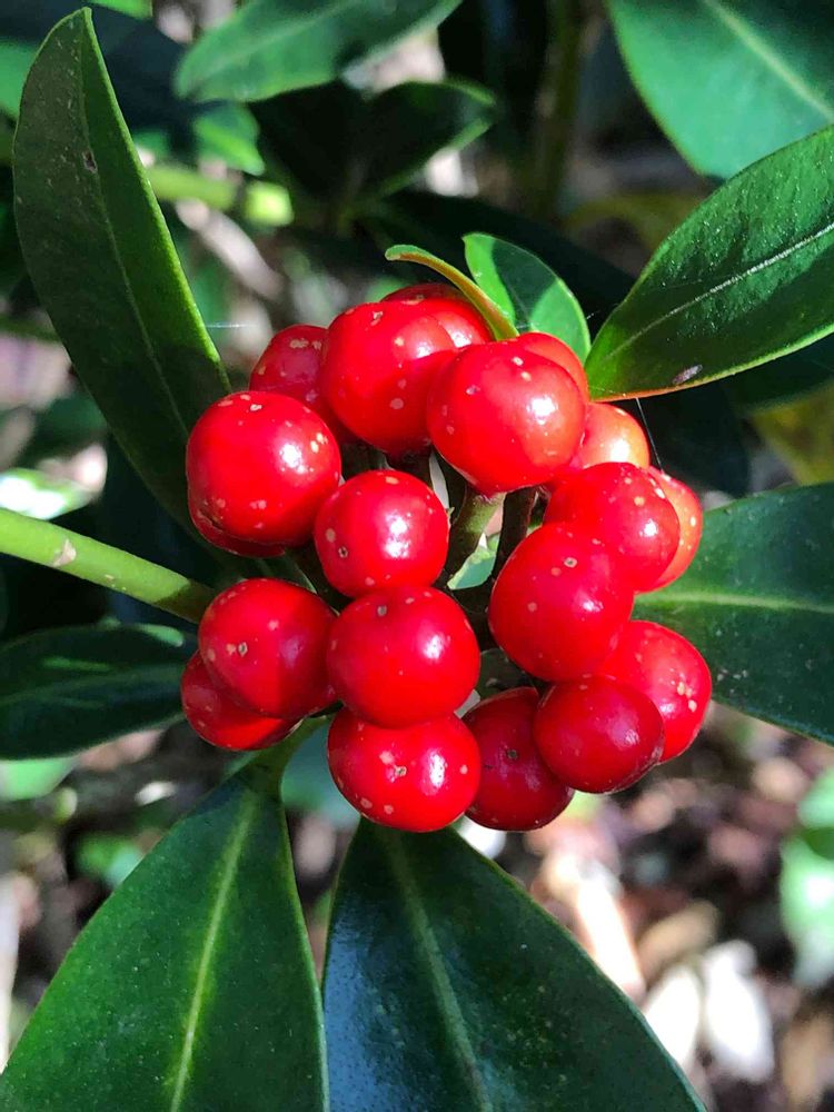 私があげてる赤い実は、山に自生してるミヤマシキミで、名前はシキミだけど、全然違う植物で、ミカン科になります😊
