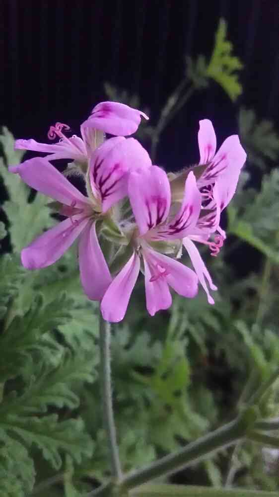 カーポートのせいで陽当たりの悪い玄関先にてようやく咲き始めたローズゼラニウム?ハーブゼラニウム?蚊除け効果がほんとにあるのかは謎です😏葉は触るとレモンの香りですね