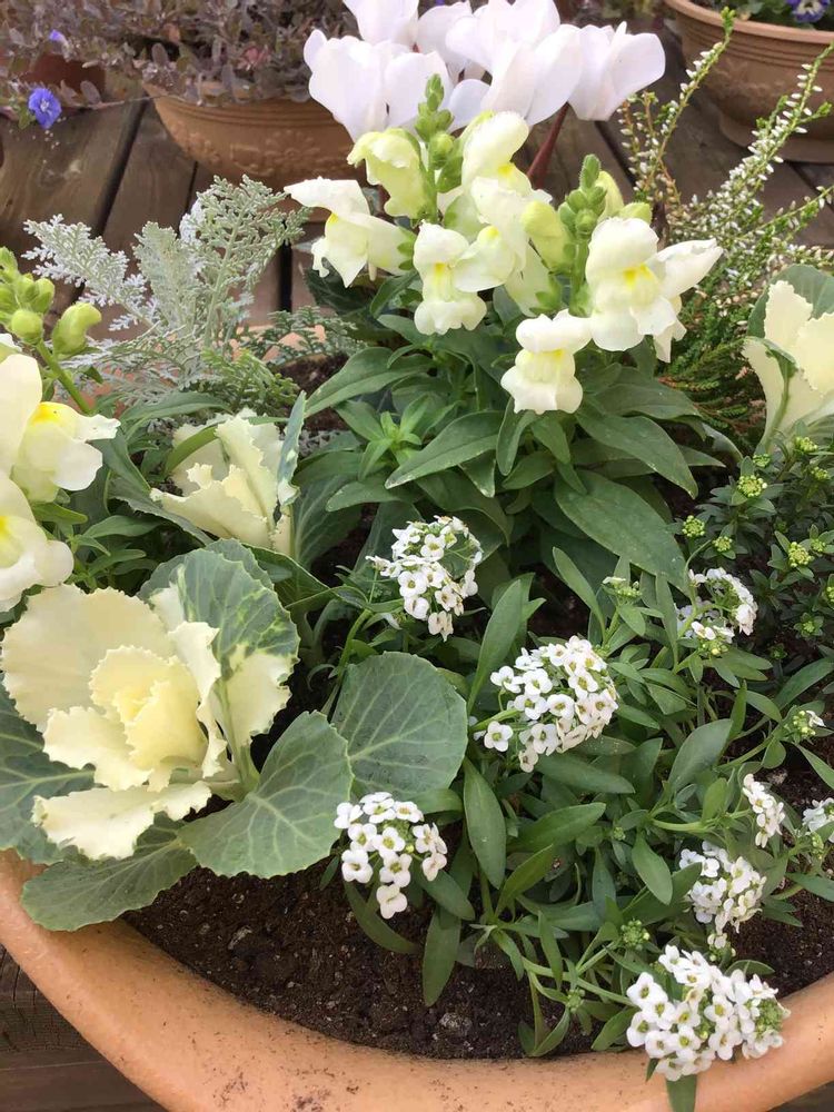 清楚な寄せ植えですね🌸私もホワイト系好きです❗️でも、他の色を寄せると脇役に見えちゃうんですよね💦