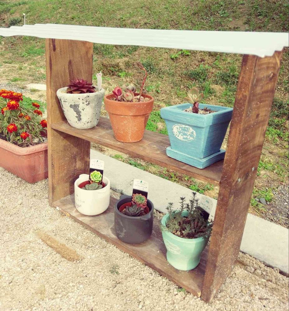 私の多肉たちのために夫さんが端切れで棚を作ってくれました❗
