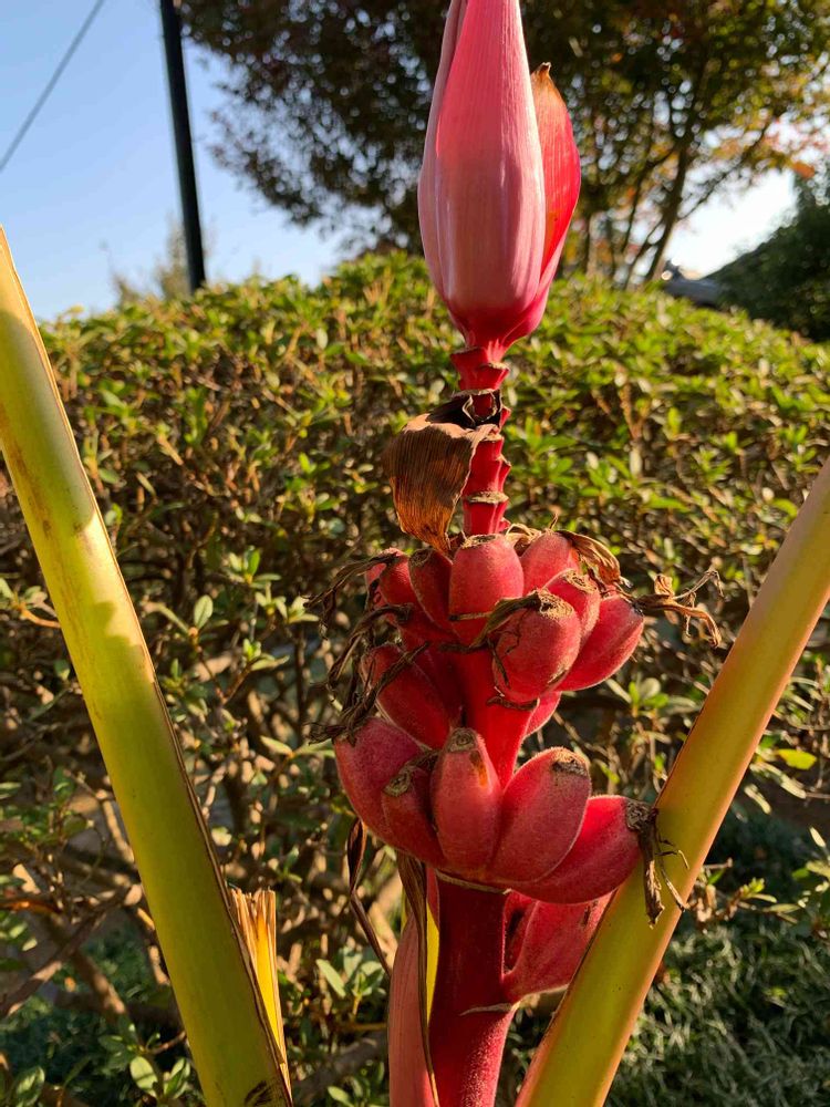 赤バナナ。成熟出来ないと、赤くなるのかな?謎!バナナじゃないのかな?
