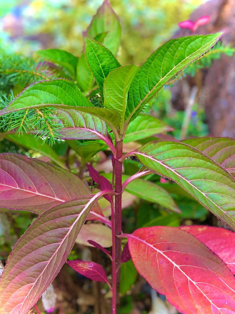 ちょうどピンク色の鶏頭さんの茎と重なって伸びてる〜😊
