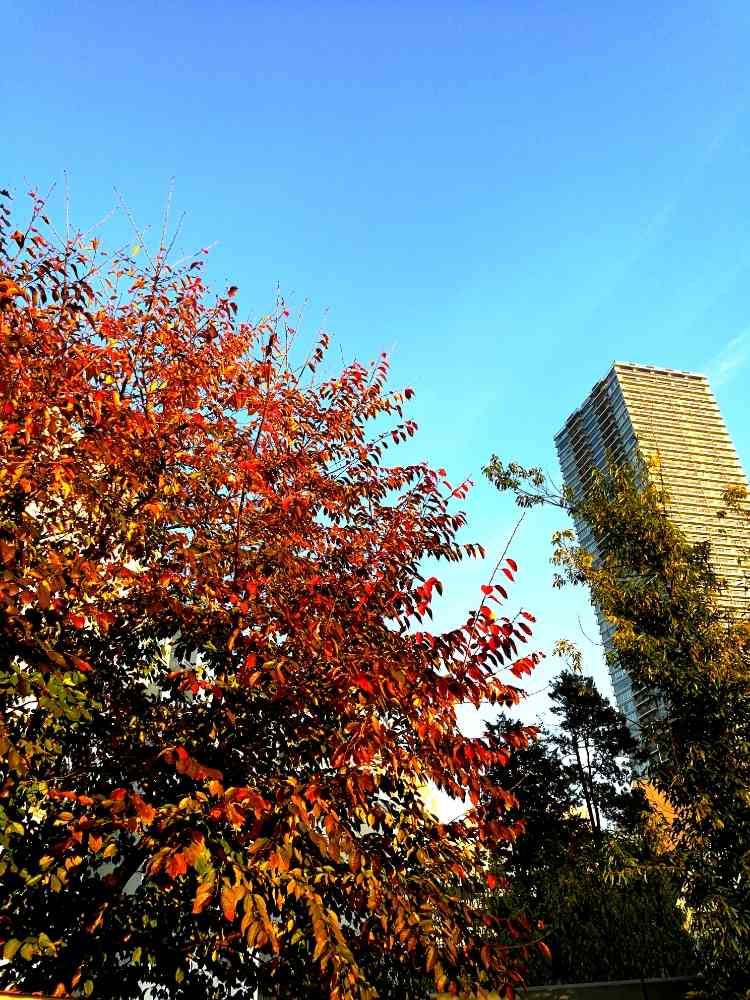 都会の秋もたまにはいいかなって😊💞🍁紅葉に差し込む午後の光がとっても綺麗でした🎵