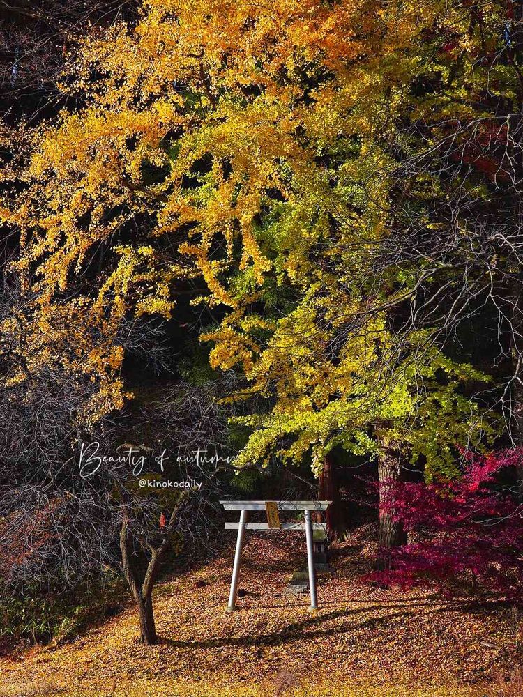 イチョウの下に可愛い鳥居⛩があった💖❤️💛💙💜