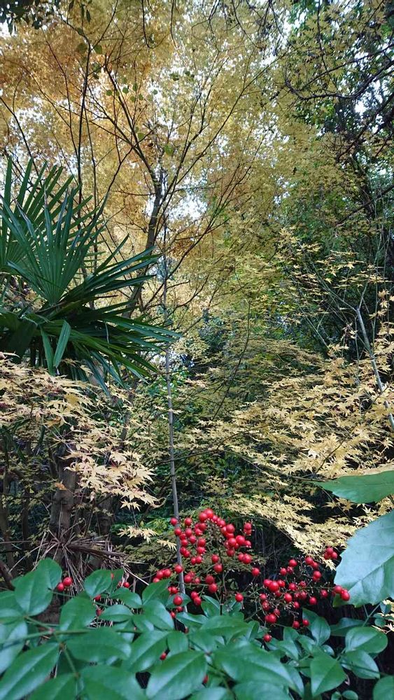 日陰になっているので、南天の🌿が赤くならなくて良いですね。