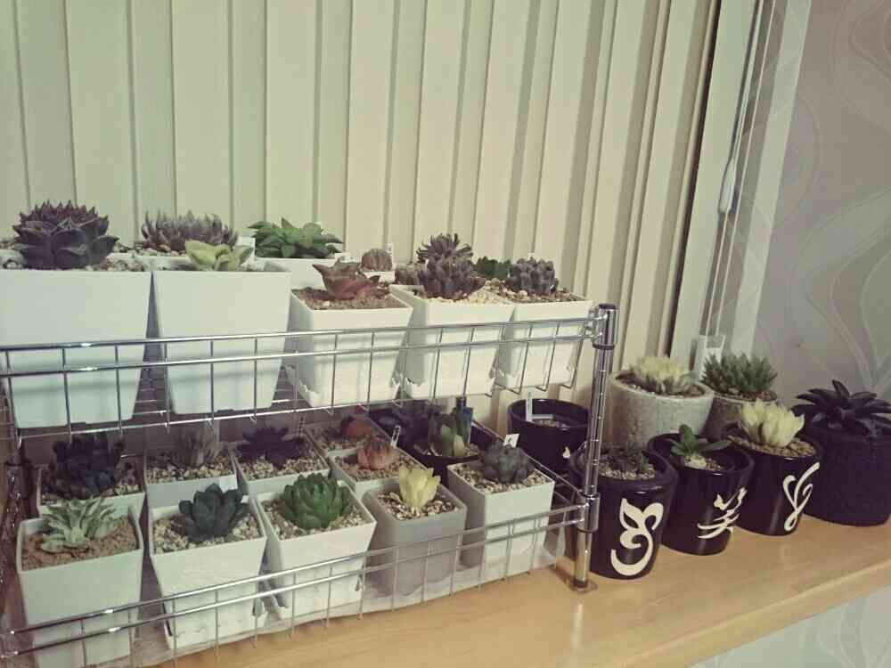 ステキなDIYの多肉棚をお持ちの方が多くて、実はこんな棚にならべてるのが恥ずかしいんですが…😅