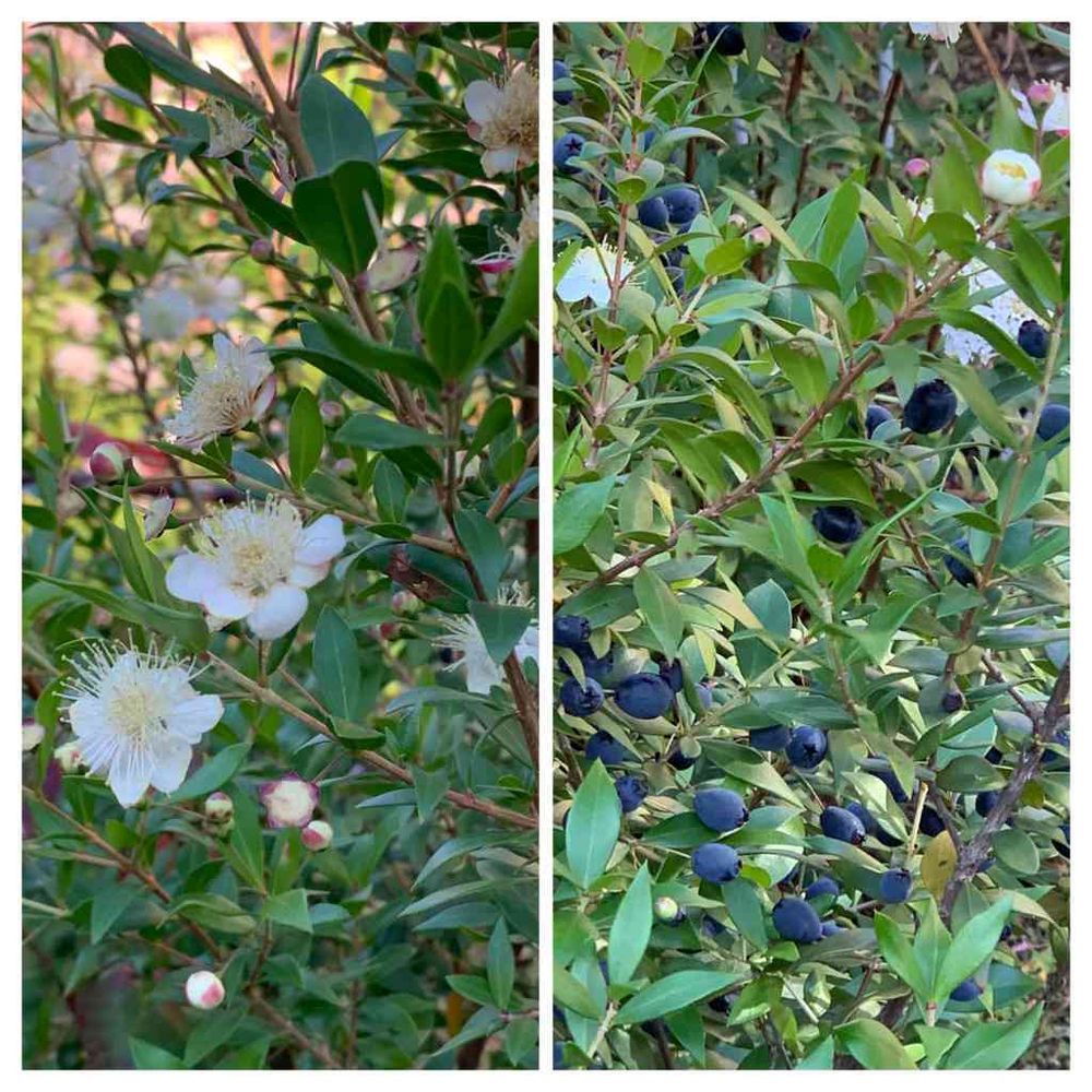 マートル(銀梅花)のお花に魅せられて、購入したものです。黒い実は食べられると聞いていましたが、いつも知らずしていました。