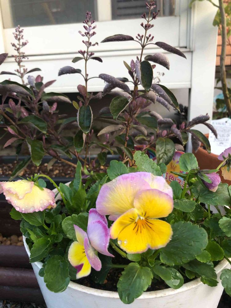 小さな庭,ミツバハマゴウ・プルプレア,パンジー 虹色スミレの投稿画像