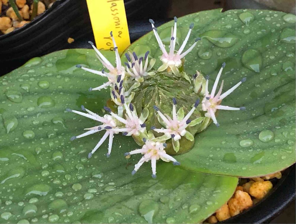 マッソニア ロッゲベルデンシスが咲き始めました✨。オシベが6本なので雪の結晶みたいに見えます❄️。