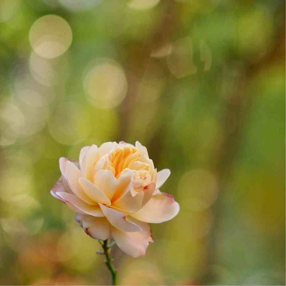 バラの背景のマルボケは、後ろにあるサザンカの葉っぱが光っているのがはいったものです。
