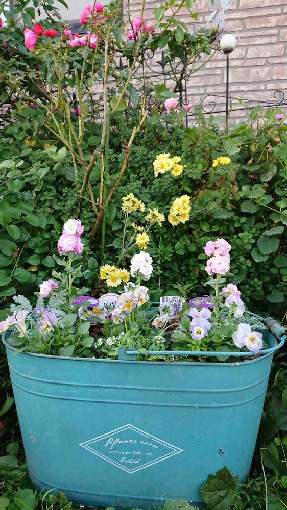 17日にお迎えしたお花達をマムさん以外は全部このブリキ鉢に