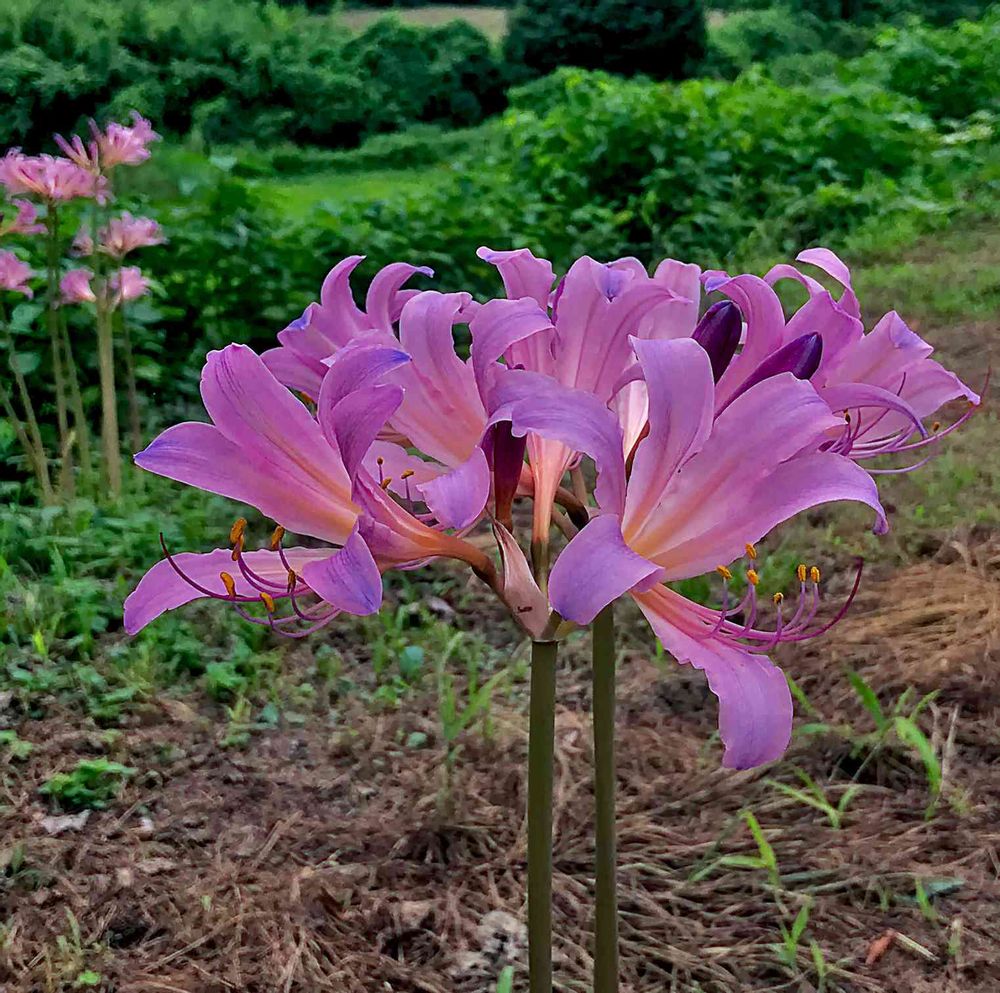 昨日退院したての知識者の義父が、ナツズイセンというんだと教えてくれました。ユリのようで葉がないので俗に裸百合、ともいうそうで‥‥うん、ナツズイセンのが響きがいいね、と。ついさっき義父とふたりで大笑いしました。