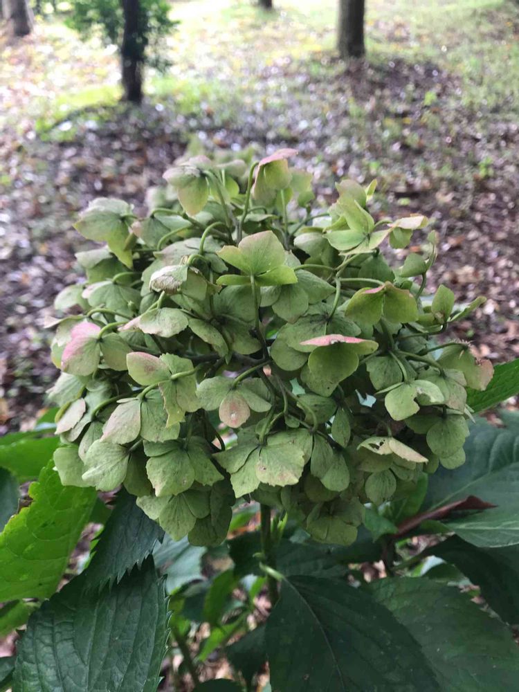 周りのアジサイは自然ドライ風になってきているのですが数本のアジサイがまだ咲いています💚