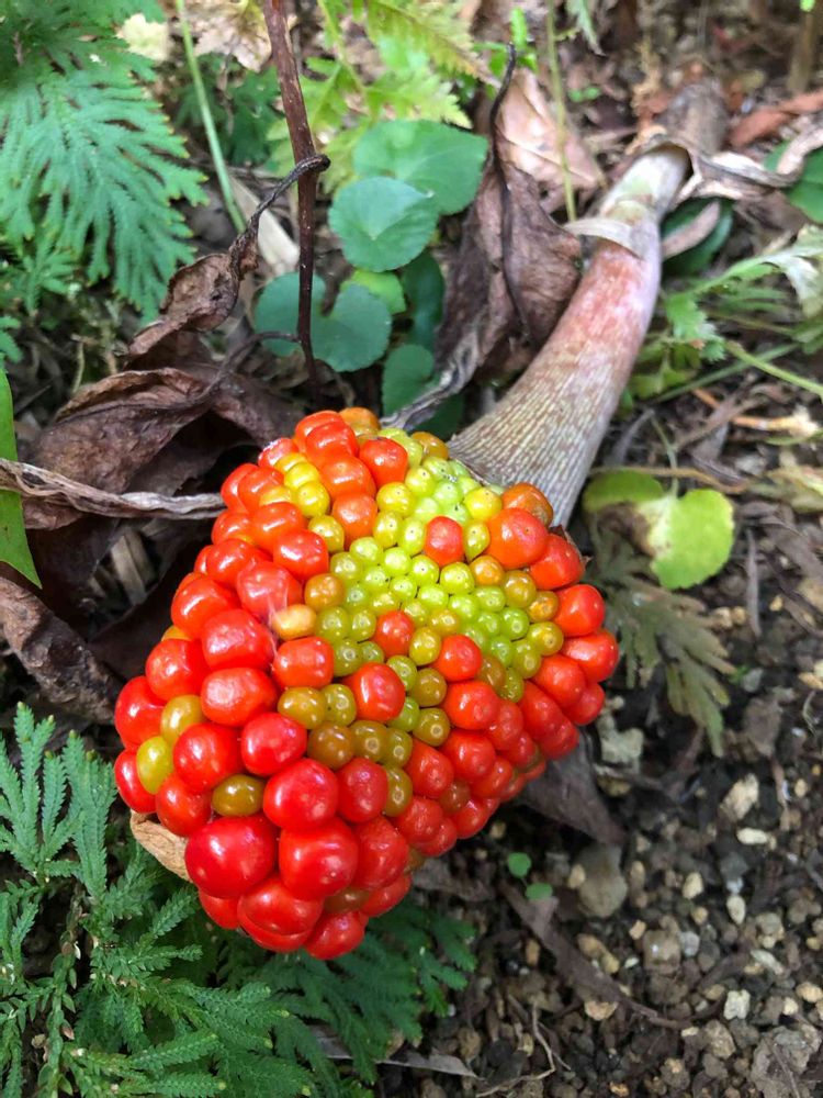 庭の木の下を覗いてみたらムサシアブミの実がなっていました。毒があるみたいですね。