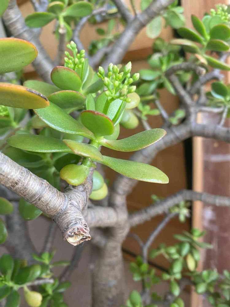 金の成る木の花芽が出てきました。この前かなり枝を落としたので、本来はもっとたくさん付いたはずです。