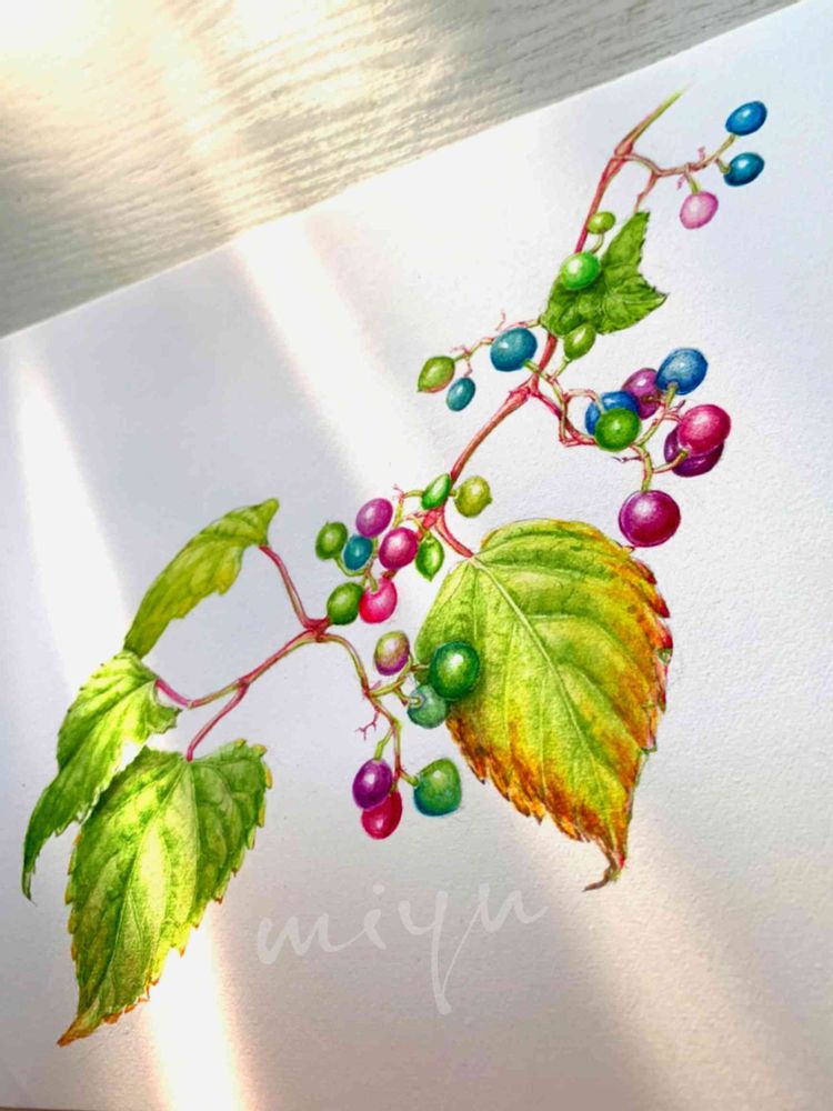 こんにちは、野葡萄可愛いから 見ると描きたくなっちゃいますね。パステルで描くと ふんわり また、可愛くなるんだろなぁ ~♡完成楽しみにしています。また、見せてくださいね。
