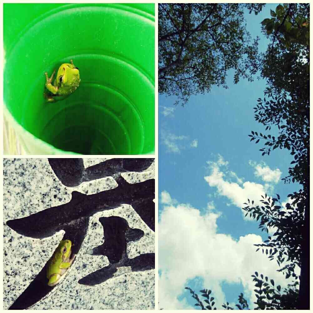 カエルが可愛すぎて、じいちゃんの墓にいるのも感激で✨