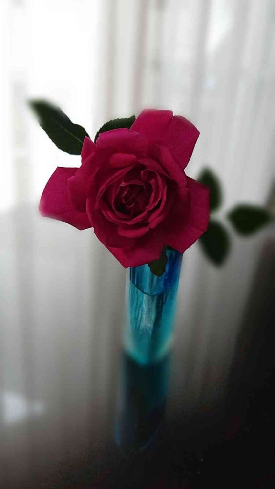 エントランスにあった 鉢植えの薔薇🌹を 1本切って ダイニングテーブルに🤗