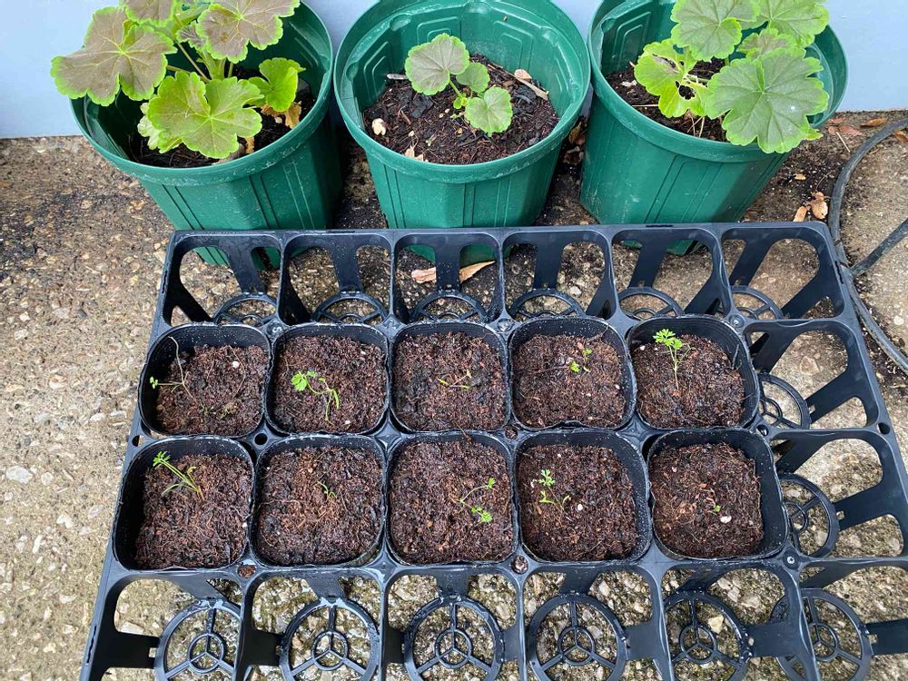 〜ʕ•ᴥ•ʔ{種から育てている黒い葉のゼラニウムと、こぼれ種から出てきたダウカスダラの芽です!