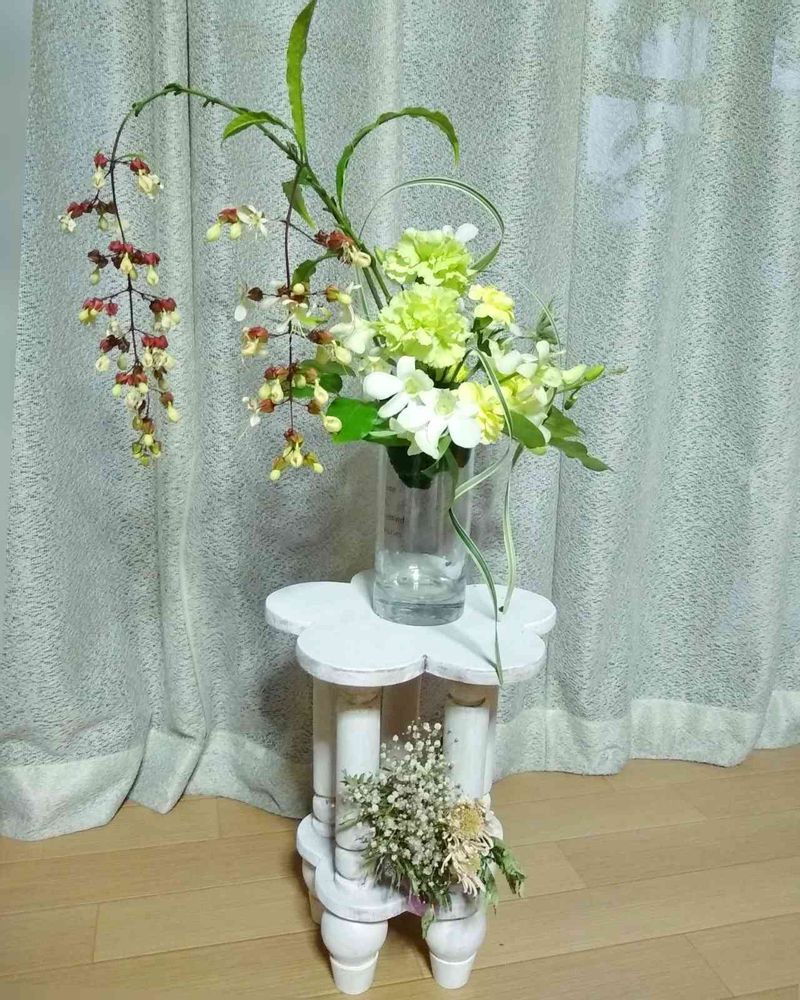 さん 今晩は。ありがとうございます。💕 花台の下のほうが何か寂しいので小さなブーケを作って挟んでみました。ドライですが少し華やかになりましたね。良かったです。♥️☺️