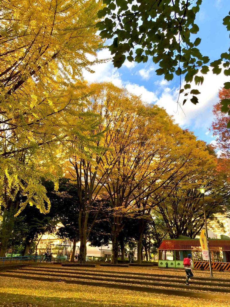 この公園は大きな団地の中にあり、多分前の東京オリンピックの頃に整備されたから木も育っていて大きい🌳