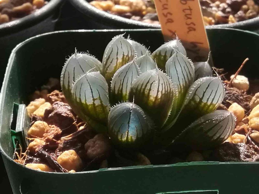 ほむらさんのハオルチア,ハオルチア属・ハオルシア属,オブツーサ×ベヌスタの投稿画像