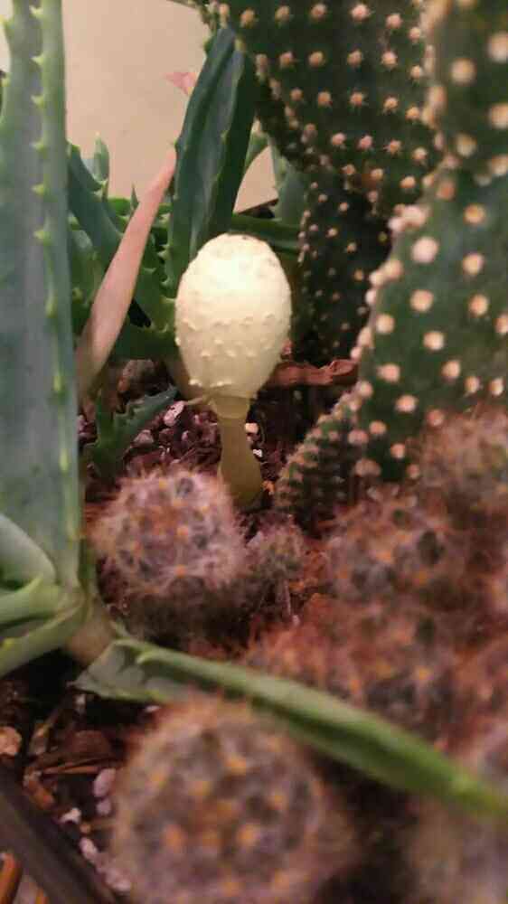 サボテンの間に子供の親指みたいなキノコ🍄
