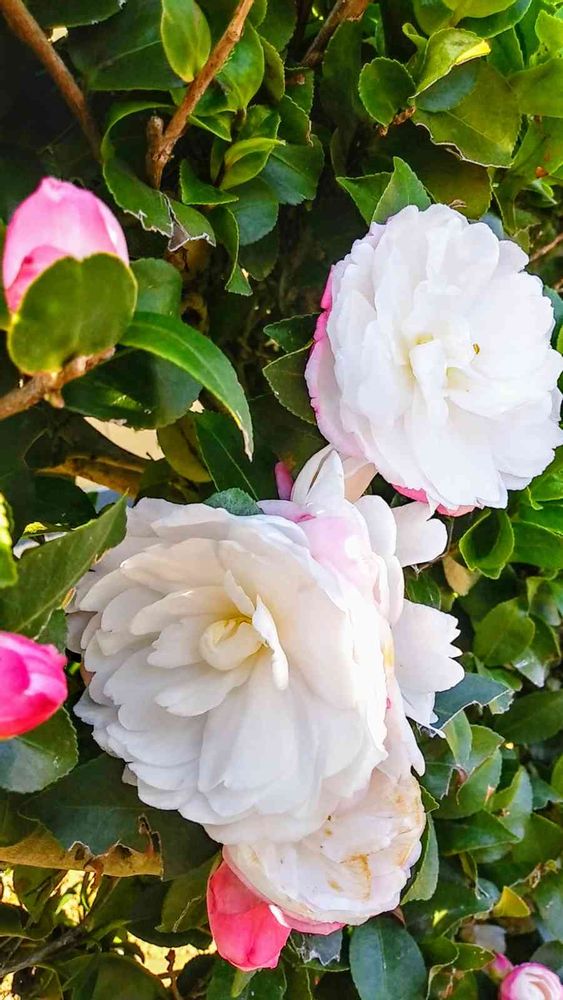 No.713 散歩道の植物とお散歩ちゃん12月①2025/1218白侘助、ビワ、オキザリスバーシカラー・・・