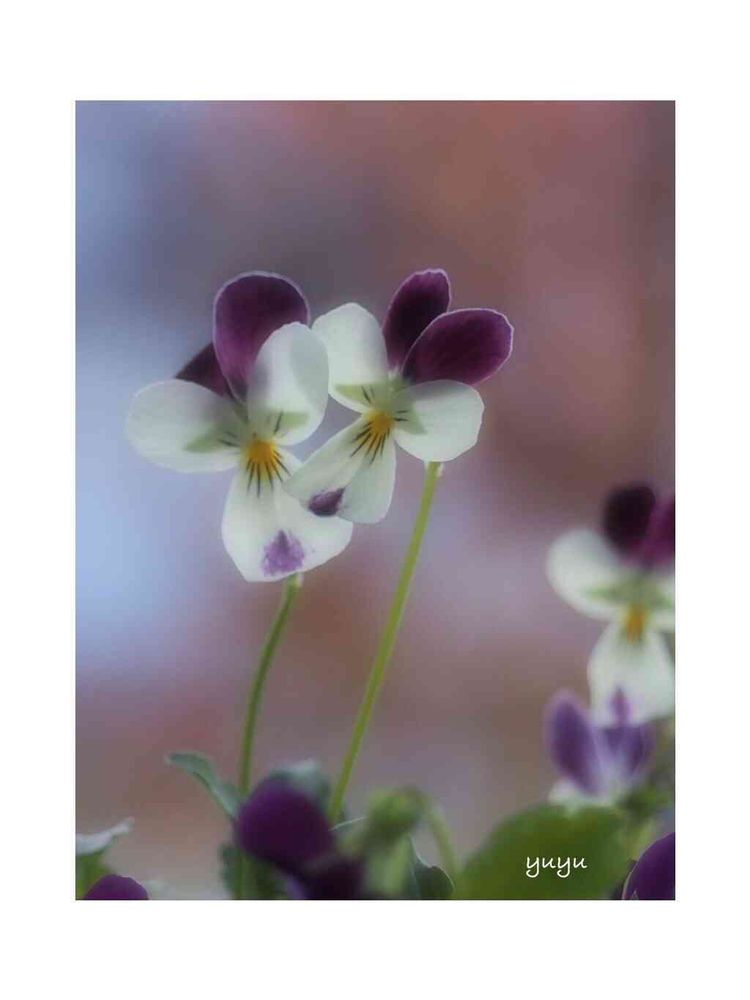 上の長めの花びら2枚が紫で兎みみみたい🐰 下にも点と紫が1点 お鼻かしら💜