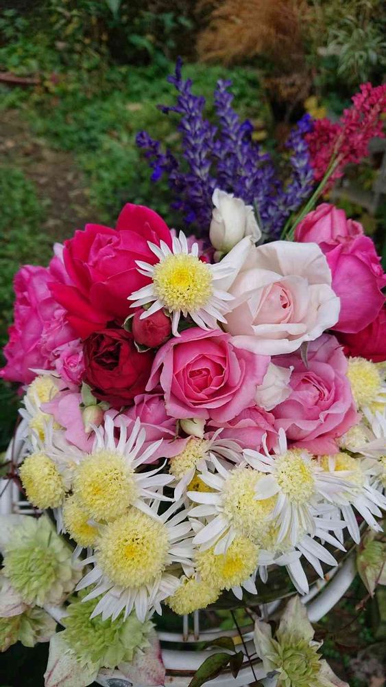 たくさんのバラさんに白万重さんと小菊さん、ゴージャスですね~💐