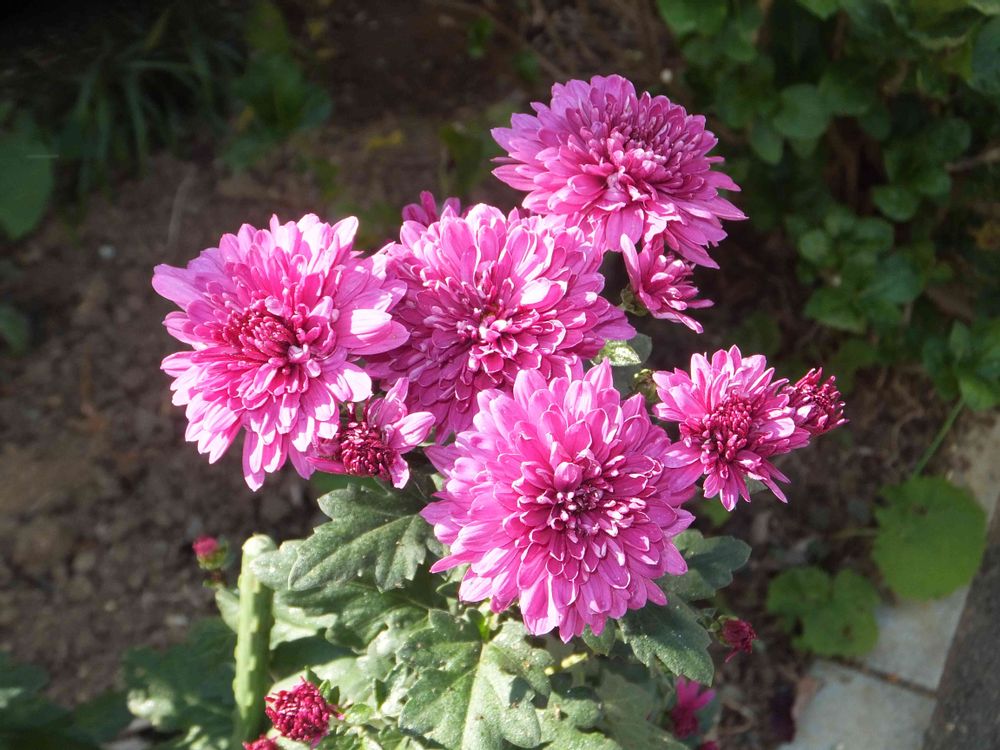 お散歩途中。 昼の陽射しを受け、ピンクの菊が輝いていました。 パチリ