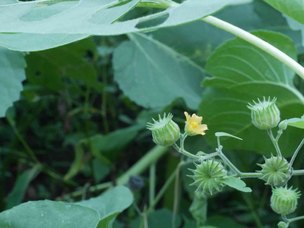 イチビでした。大きな葉っぱ、どげとげの実、黄色いお花…ちょっとかわいいですが、畑の厄介者らしいですね。この花に興味を示す私はすっかり都会っ子になってしまったんでしょうね…